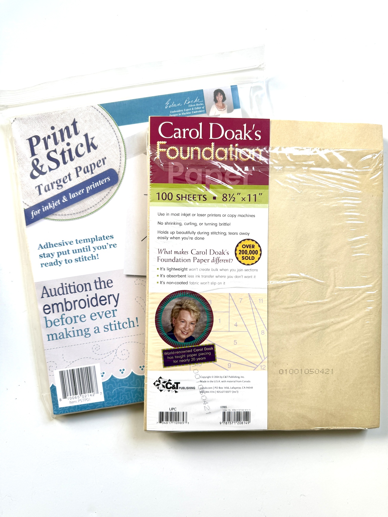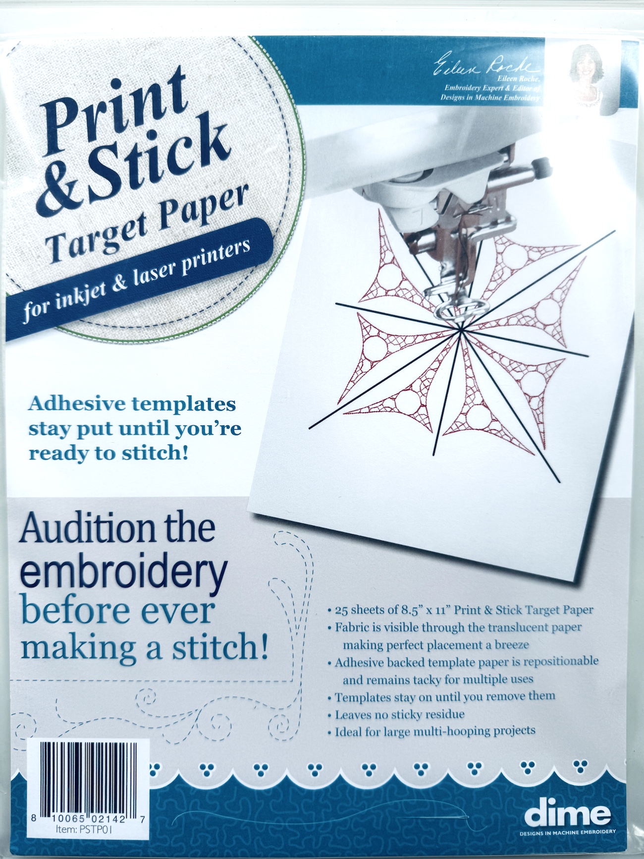 Printer-friendly paper to help you get perfect stitching of your quilting designs and machine quilting. Doak package is opened but only one or two sheets used. Print & Stick never opened.