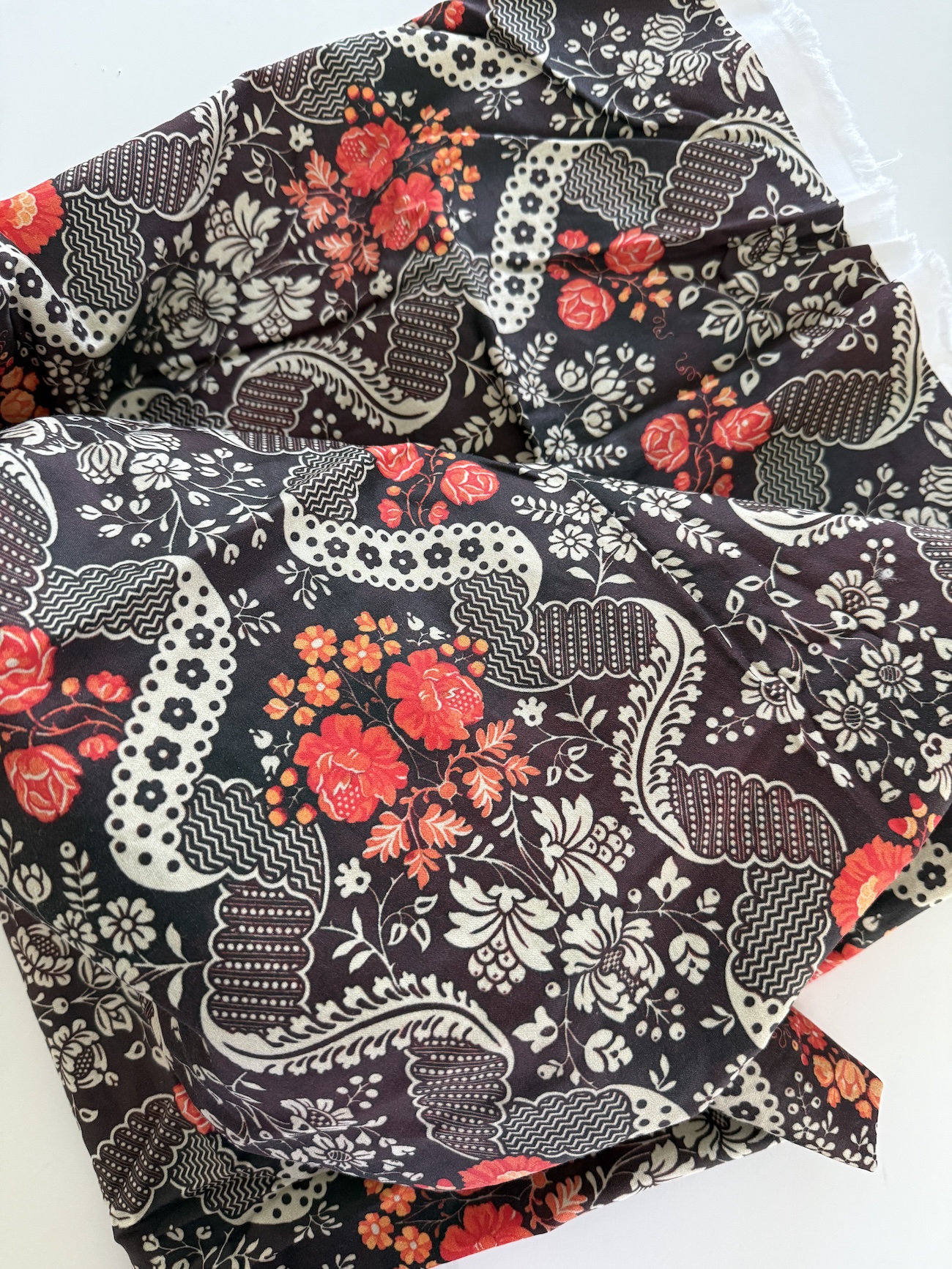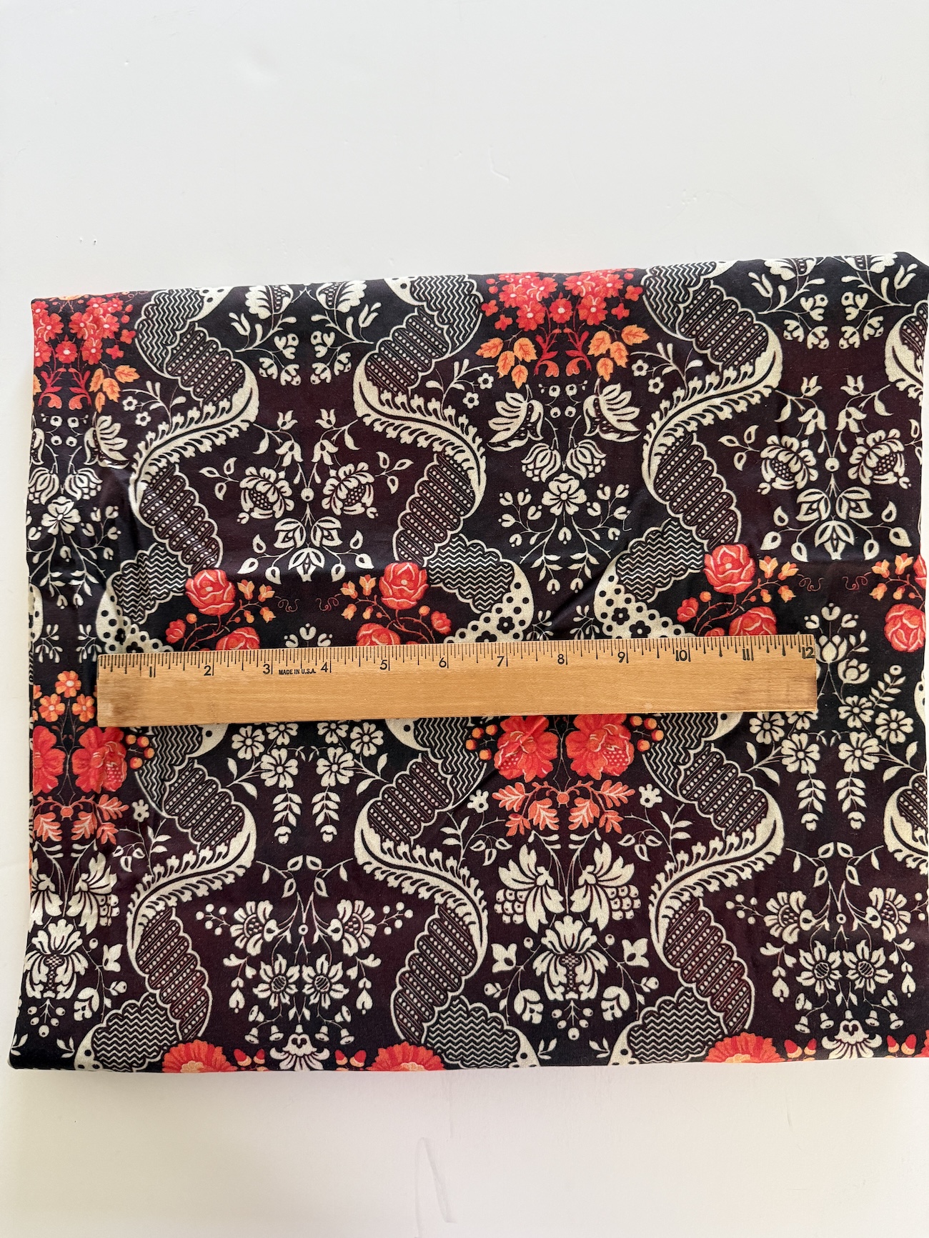 Organic cotton sateen. 1 yd x 54″ wide, minus a 9″x12″ piece. Spoonflower designer muhlenkott